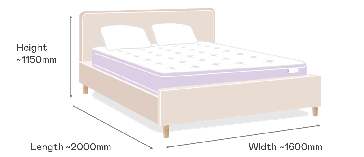Generally, a double bed frame size is around 1900mm to 2100 mm long and 1400mm to 1900 mm wide (including the width of the bedhead). The dimensions of a double bed frame can vary slightly, depending on the design of the bed frame itself. However, they are made to accommodate a standard double size mattress.