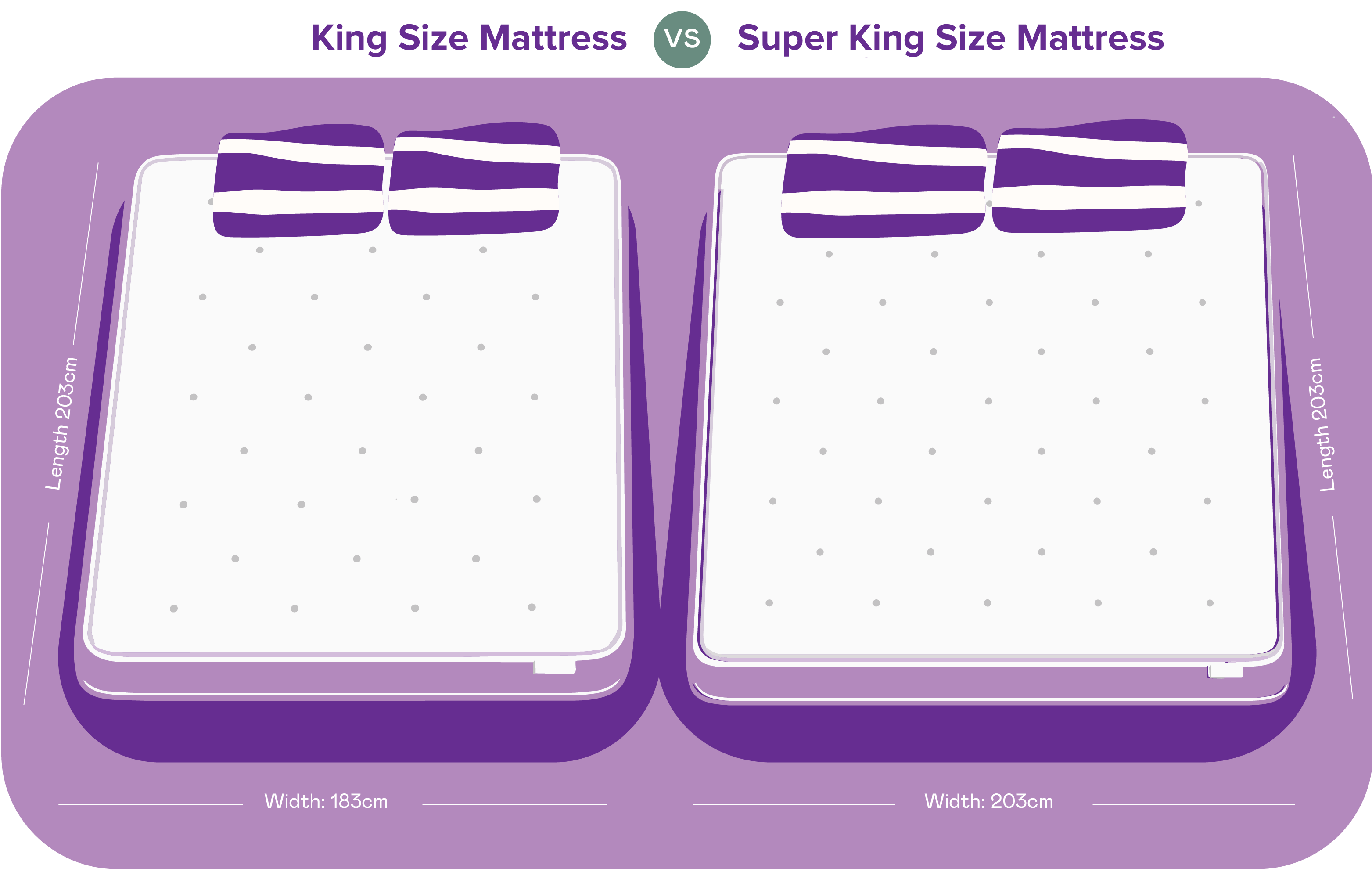 King vs. Super King Size: What’s the Difference?Quick answer: The difference between king and super king bed size is width. A super king bed is 20cm wider than a standard king bed. At Beds n Dreams, we have decades of experience helping people ...