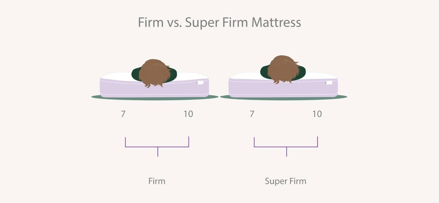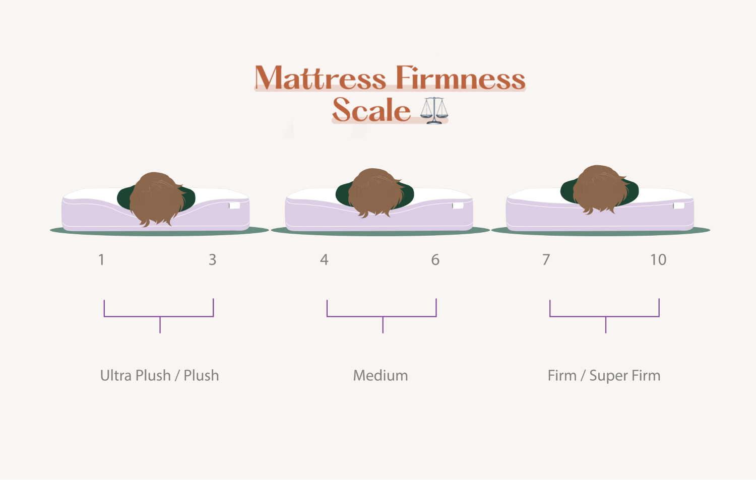 Simply put, the mattress firmness scale is a way to determine how soft or hard a mattress feels. Most brands use a scale from 1 to 10. One being super soft and squishy, and ten being pretty solid. Most people end up choosing a mattress somewhere in the middle.