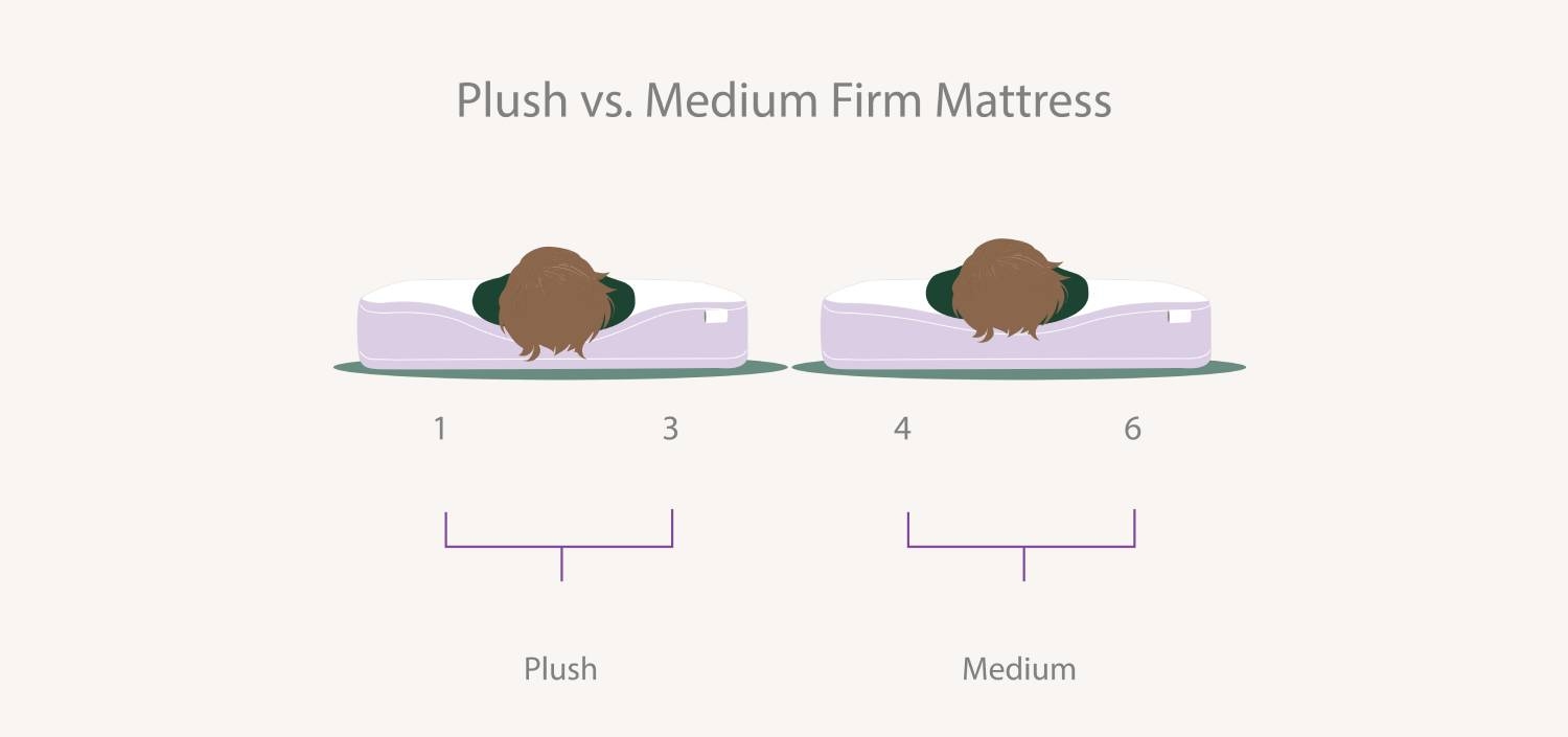 Comparing a plush vs medium mattress? Plush gives you more sink. Medium gives you more lift. It’s a feel thing, not a quality thing.