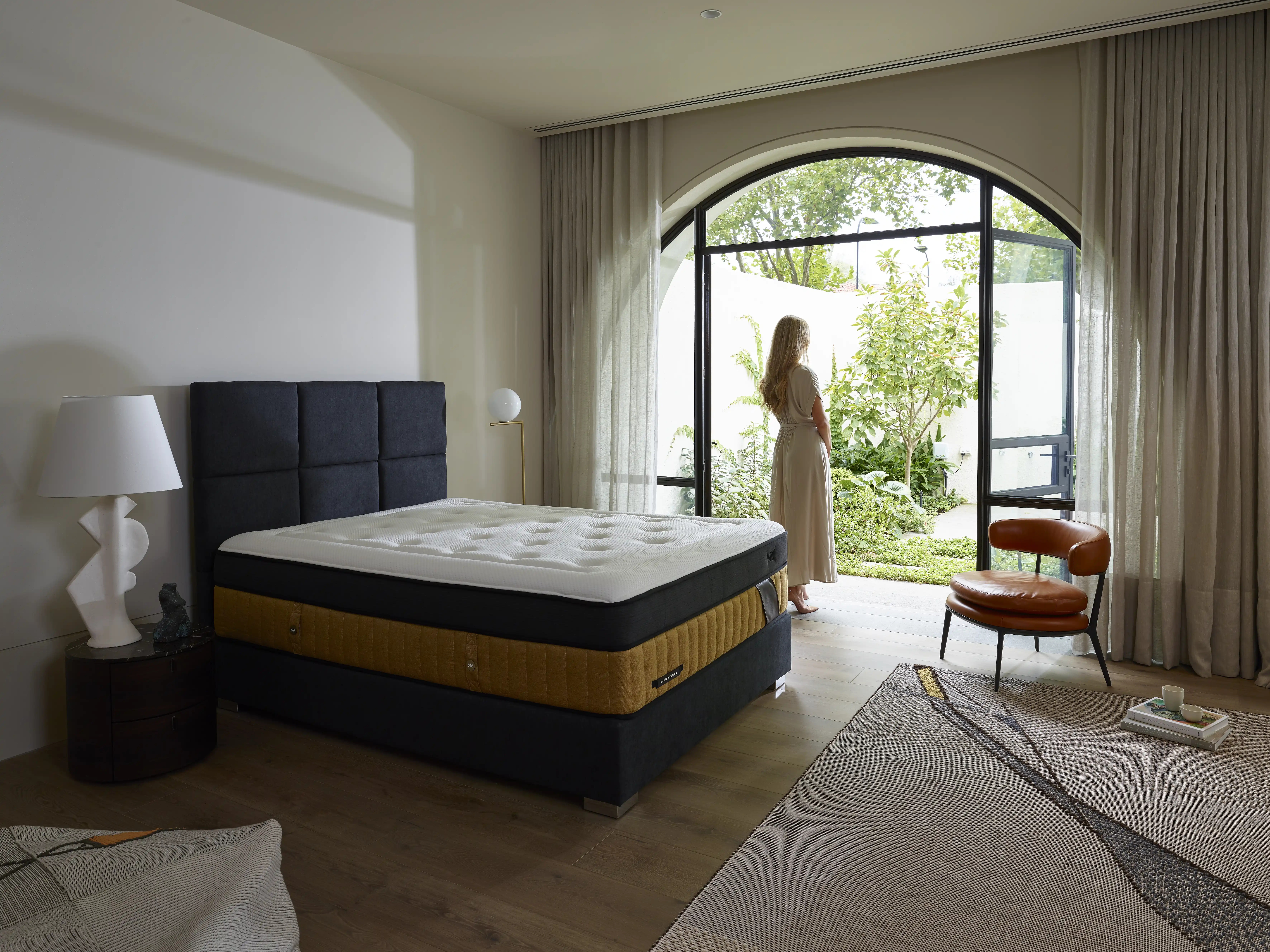 Low profile Micro Pocket Coil system combined with German Herkules Titanium Alloy Spring System to provide excellent body contouring and support.