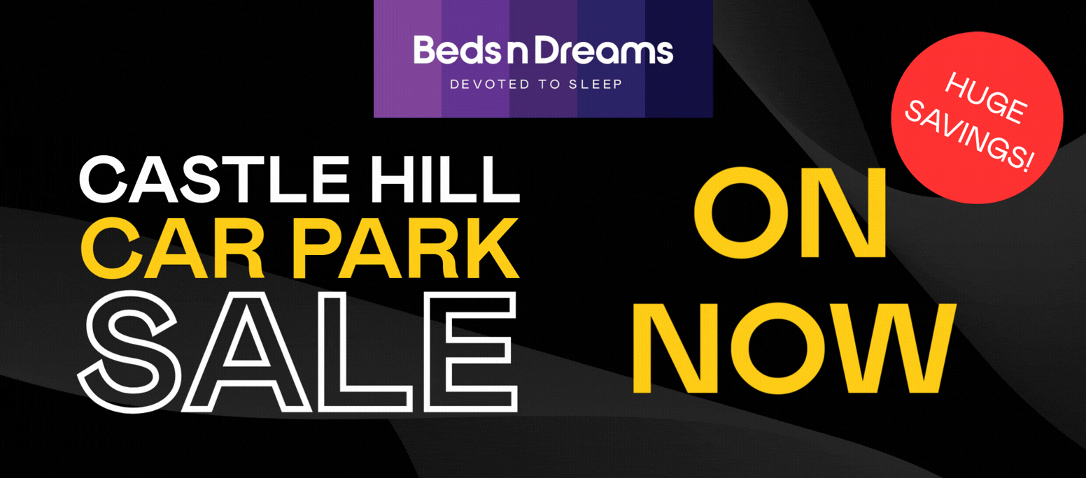 *Beds n Dreams CASTLE HILL only. Car Park stock includes new, discontinued or damaged stock. Products are sold ‘as is’ on a no-warranty basis. Any damage or defects are accepted by the purchaser. No returns accepted. No finance or lay-by available. Car Park pricing is exclusive of any other offer. Products shown are for illustrative purposes only. Available stock will vary, while stock lasts.