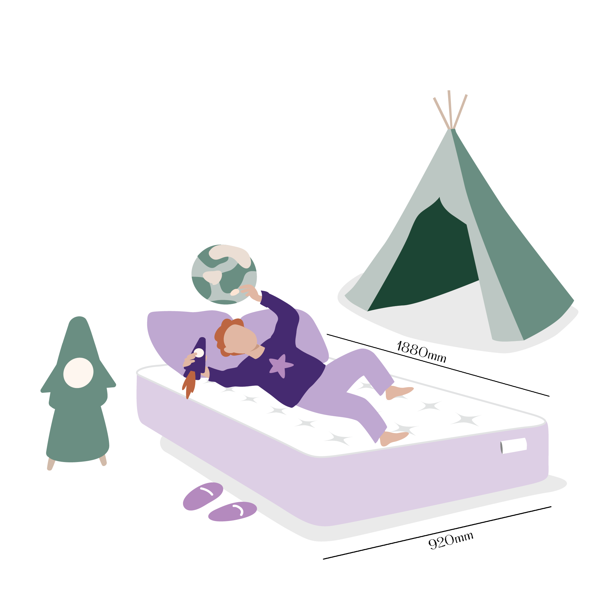 We carry the standard range of Australian mattress sizes from single all the way through to super king, though we recommend the following kids mattress sizes: