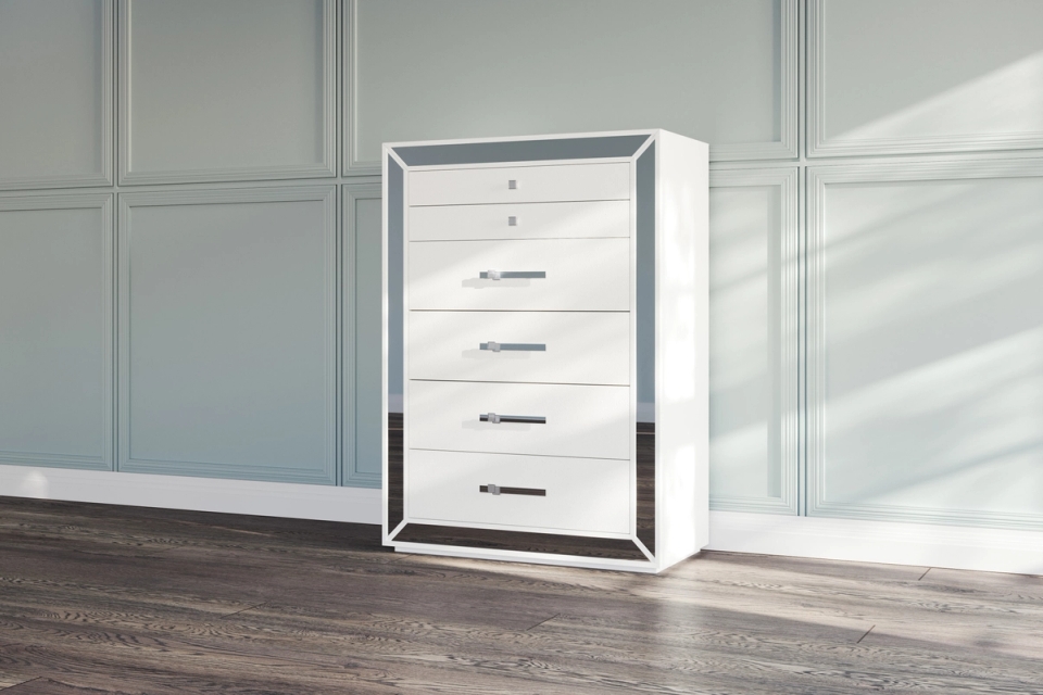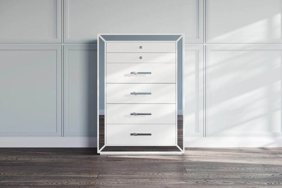 The Amani bedside table exudes elegance and style. The Amani proudly displays a contemporary colour palette of cool greys and silver tones, the Amani tallboy will be the perfect addition to your home.