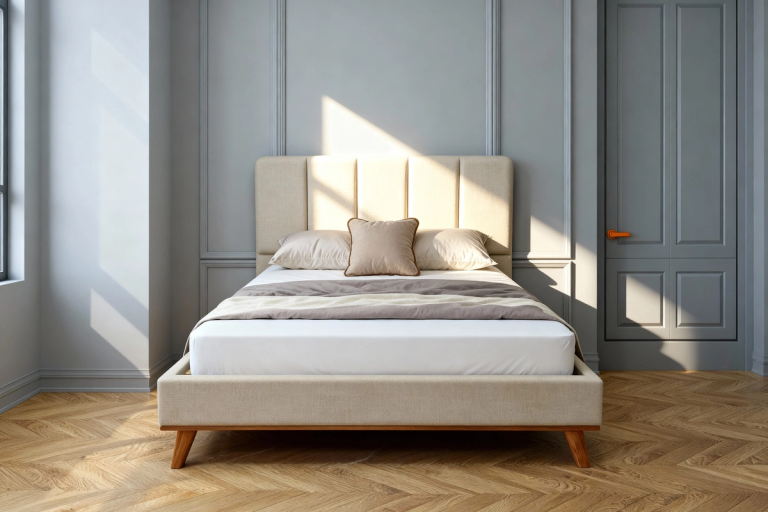 The Berlin Bed exudes modern sophistication with its clean lines and minimalist silhouette. Its softly padded headboard and subtle vertical panels create an inviting, tailored look that complements any contemporary space. Effortlessly stylish and understated, it’s the perfect statement piece for a calm, refined bedroom.