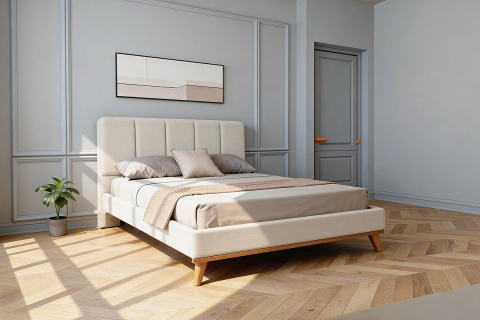 The Berlin Bed exudes modern sophistication with its clean lines and minimalist silhouette. Its softly padded headboard and subtle vertical panels create an inviting, tailored look that complements any contemporary space. Effortlessly stylish and understated, it’s the perfect statement piece for a calm, refined bedroom.