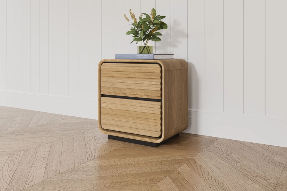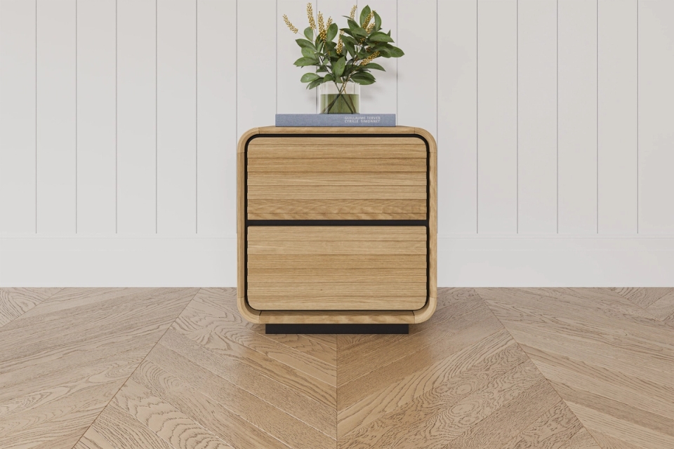Our Brooklyn Bedside Table has curves in all the right places, bringing a sleek, modern edge to your bedroom. With two spacious drawers for easy storage, it’s the perfect companion to keep everything within reach while adding effortless style to your suite.