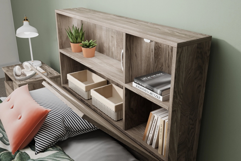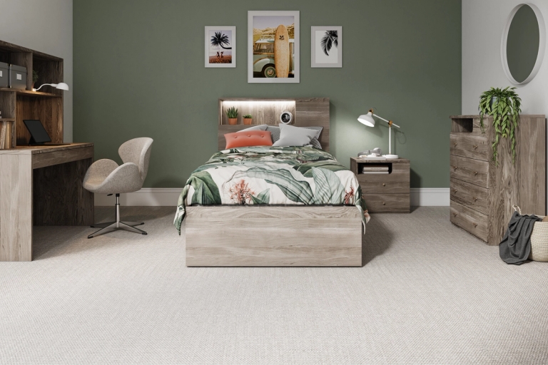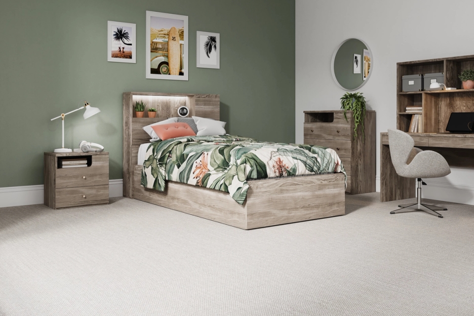 The Buddy range does not let functionality get in the way of eye-catching design. The Buddy bed frame has all the mod cons which will have your child counting down to bedtime. Cool grey tones make the perfect foundation for your new bedroom. Features include: Concealed bed head storage / LED lighting / Wireless charging pad / Under bed gas-lift and drawer storage.