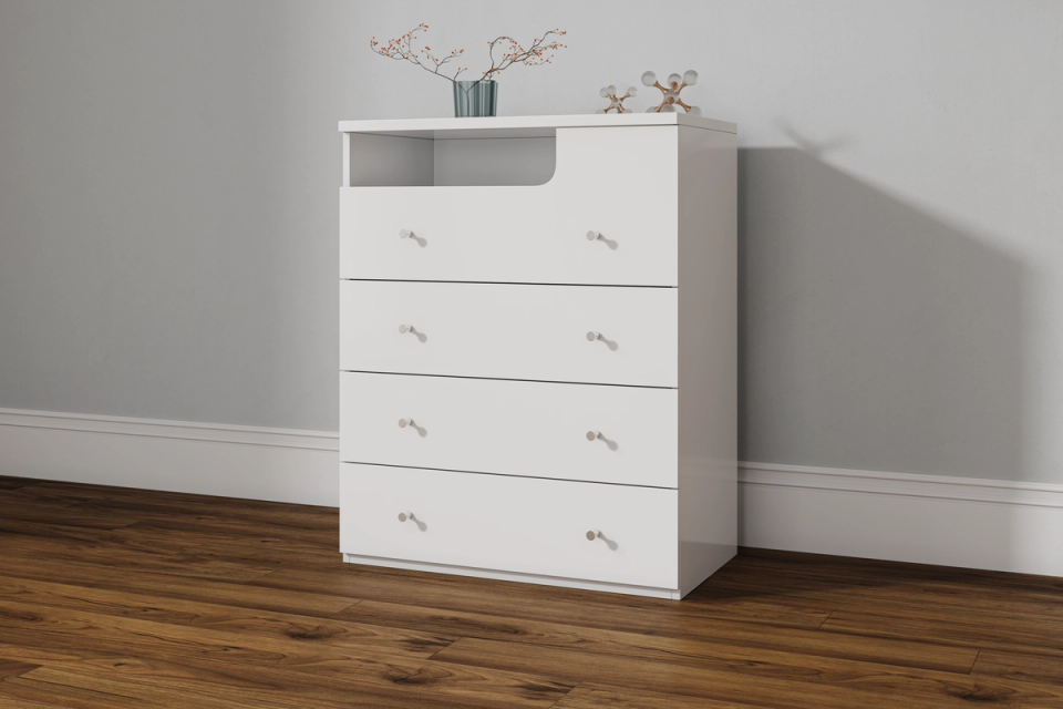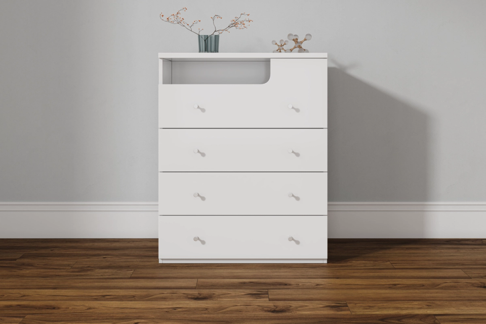 The Buddy range does not let functionality get in the way of eye-catching design. The Buddy tallboy will be a welcome addition to your home. A matte white wood grain finish makes the perfect foundation for your new bedroom.
