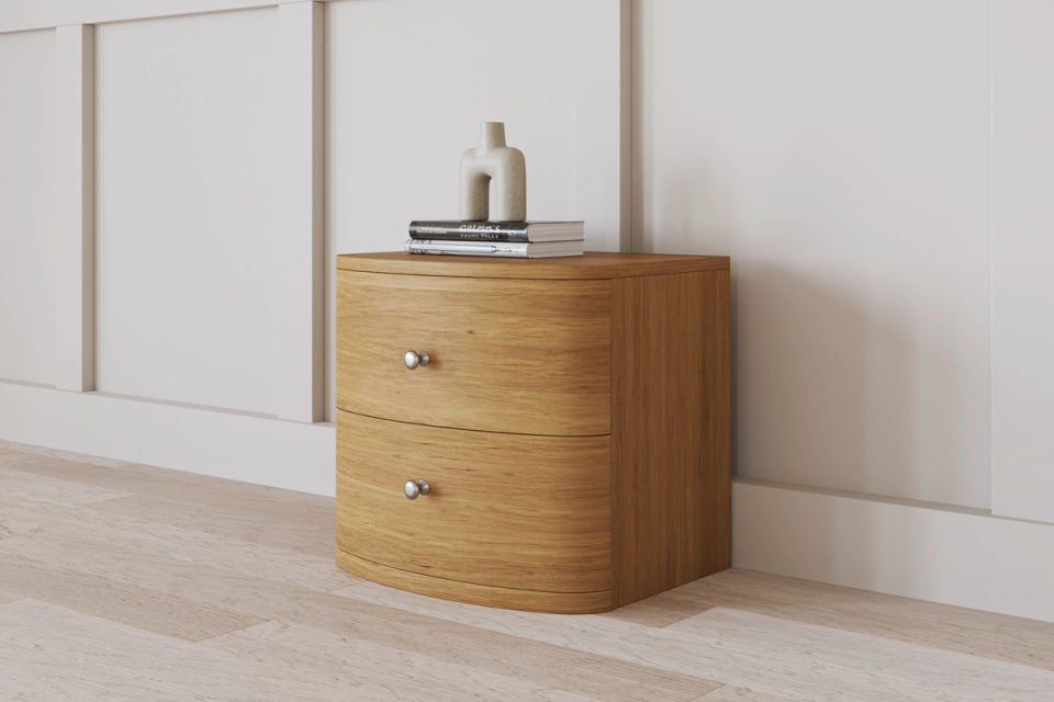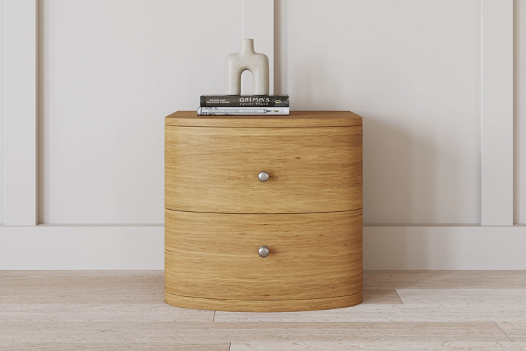 The Capri Bedside Table pairs smooth curves with a modern, refined finish to bring effortless style to your bedroom. Designed with two spacious drawers, it offers practical storage for your nightly essentials while maintaining a clean, contemporary look. A perfect companion to the Capri Bed, it completes your suite with elegance and everyday convenience.