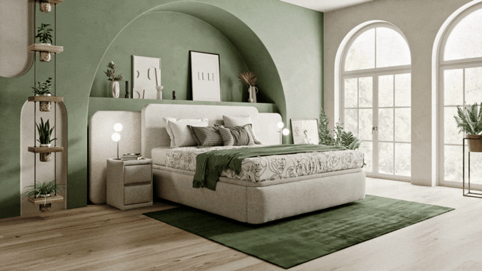 Our Exclusive range of Elle Fabric beds have launched. The Rosalind Bed has been designed by Elle Paris, with a contemporary neutral toned fabric, an adjustable bedhead customisable to your space. Bring a slice of Paris to your home today with the Elle Rosalind Bed Frame. The Rosalind Bed features unique 'wings' that can extend outwards from the bedhead. Once fully extended on both sides, the total width across the bedhead becomes 2,550mm wide. If not extended, the total width is 1,540mm. (King & Queen sizes). Complete the ELLE look with accompanying Riviera Bedside Tables.