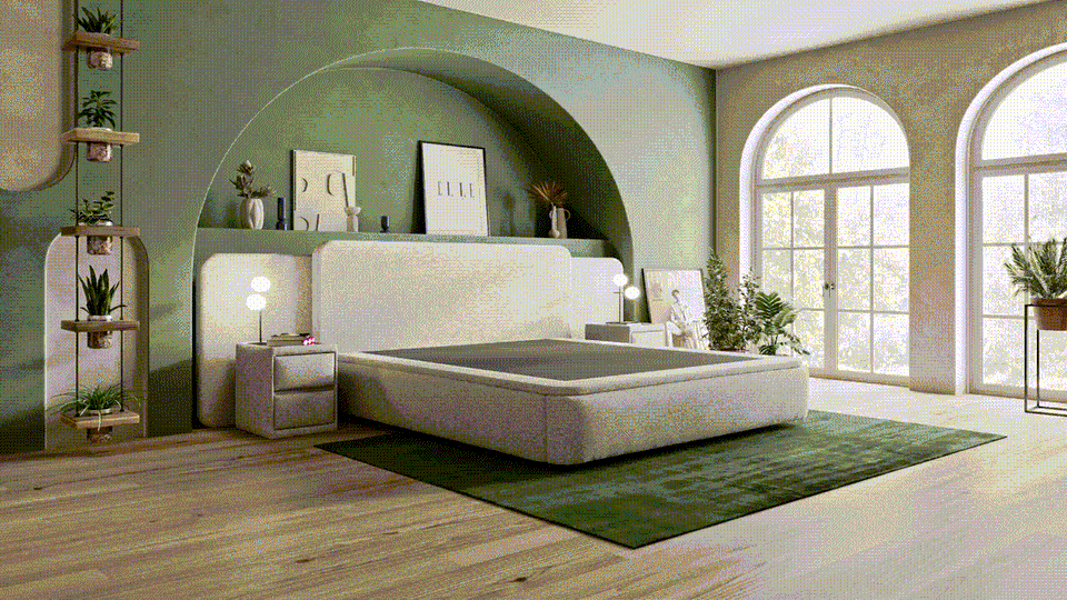 Our Exclusive range of Elle Fabric beds have launched. The Rosalind Bed has been designed by Elle Paris, with a contemporary neutral toned fabric, an adjustable bedhead customisable to your space. Bring a slice of Paris to your home today with the Elle Rosalind Bed Frame. The Rosalind Bed features unique 'wings' that can extend outwards from the bedhead. Once fully extended on both sides, the total width across the bedhead becomes 2,550mm wide. If not extended, the total width is 1,540mm. (King & Queen sizes). Complete the ELLE look with accompanying Riviera Bedside Tables.