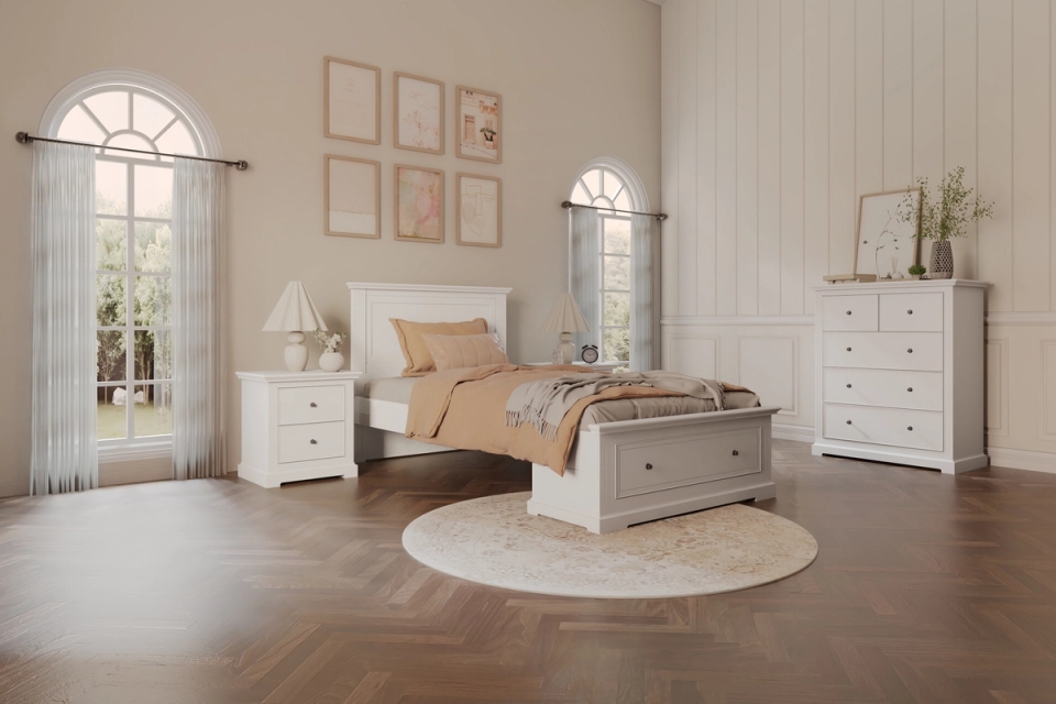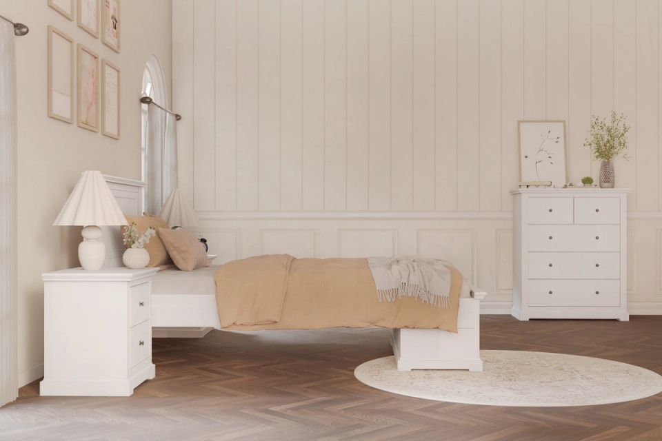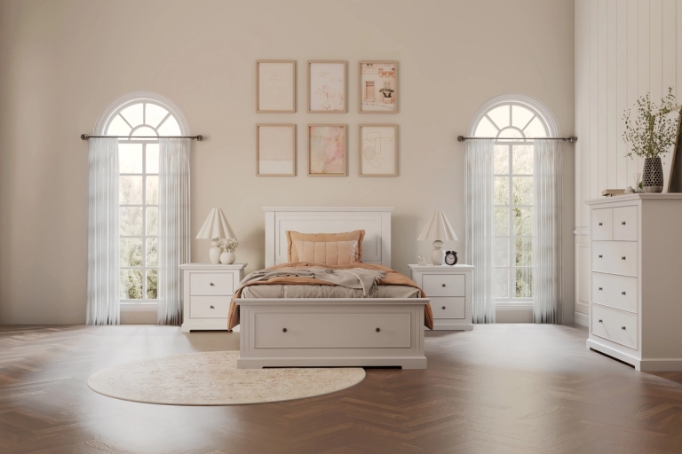 The Isabelle bed frame has been built with a lavish eye for detail and a timeless sense of style. Its creamy white finish and classic shaker style will make it an outstanding centrepiece in your kiddo's bedroom!