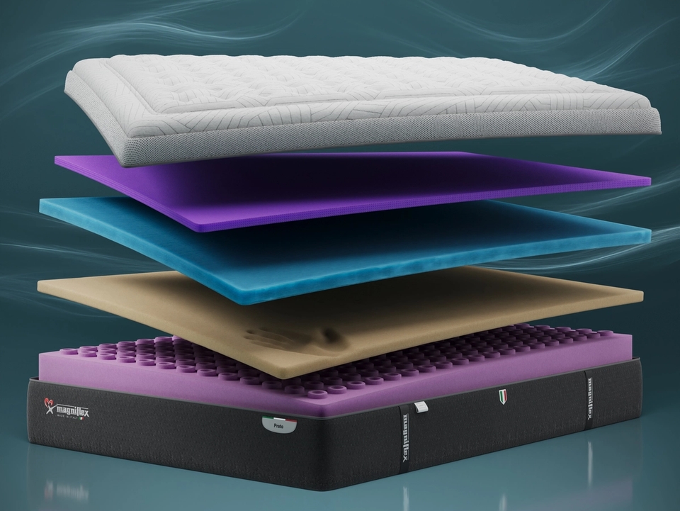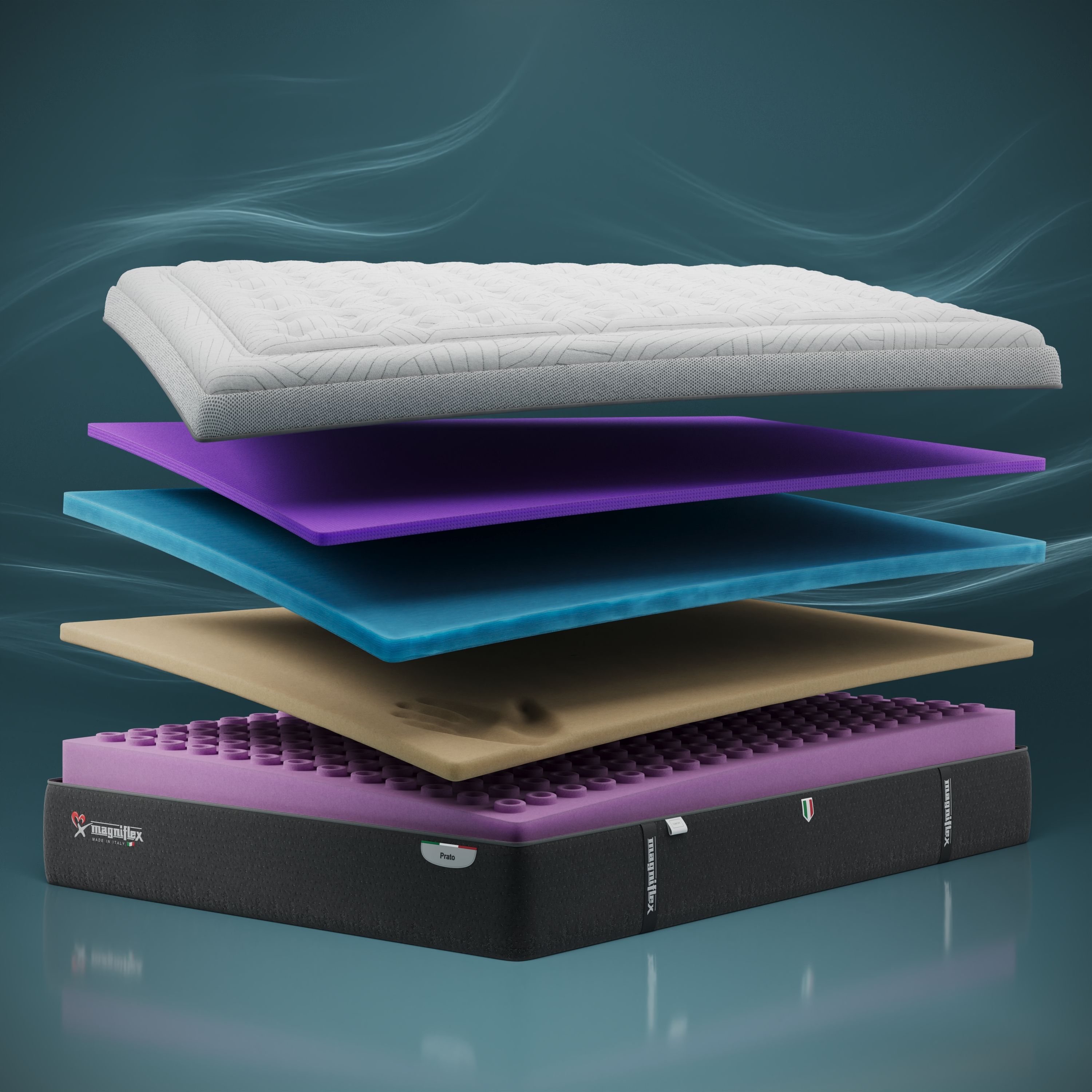 Unwind in pure Italian comfort with the Magniflex Prato. Crafted to soothe both body and mind, it helps you relax deeply for a peaceful night’s rest. Its advanced comfort layers promote cooling airflow, gentle pressure relief, and balanced support across every contour of your body. Naturally calming and restorative materials help ease tension and encourage relaxation, while a durable, high-density core ensures long-lasting stability and strength. Designed and made in Italy, the Prato delivers the perfect balance of softness, breathability, and rejuvenating comfort — for sleep that truly restores.