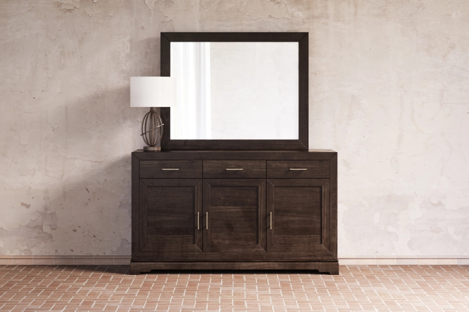 The Milan Dresser with Mirror balances opulence with practical storage options. With a chic timber finish and brushed gold hardware, the Milan Dresser with Mirror will be a welcome addition to your bedroom.