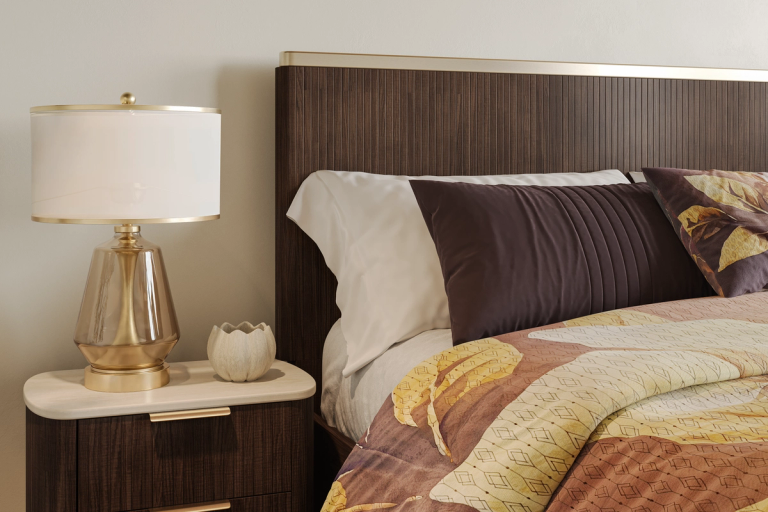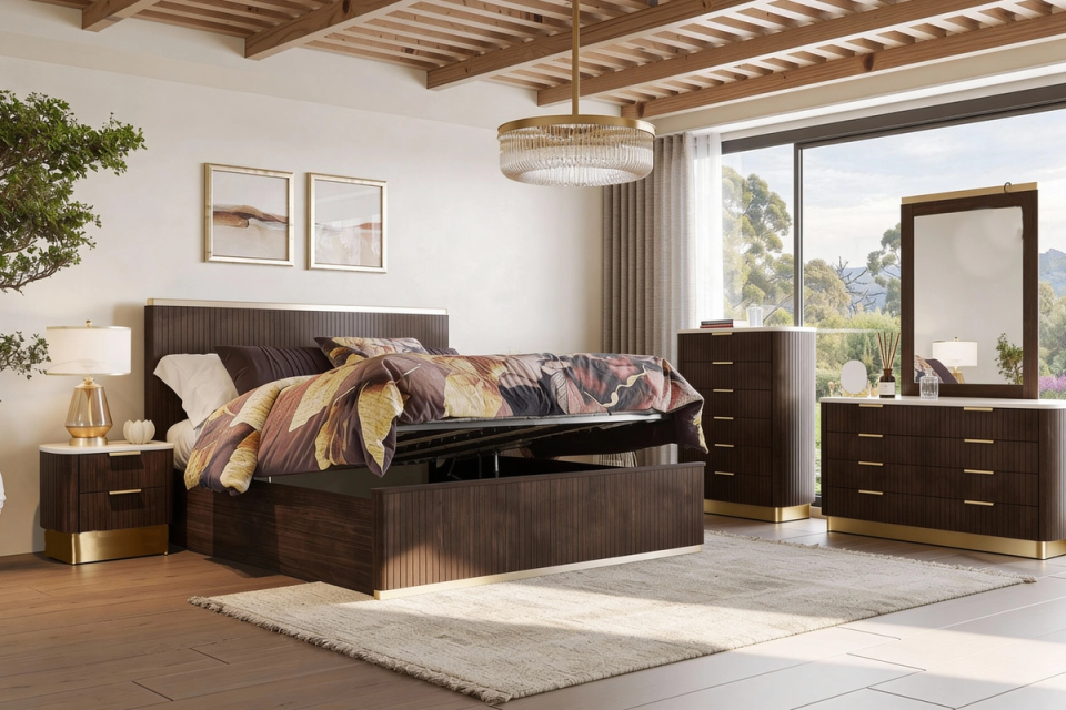 Add a touch of Moroccan elegance to your bedroom with our luxurious Morocco Bed. Featuring brushed gold embellishments, this bed exudes quiet luxury. Transform your room into a peaceful oasis. Spice up your sleep with our Morocco Bed! The Morocco bed features gaslift storage and brushed gold hardware.