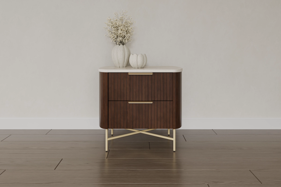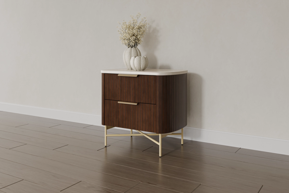 Add a touch of Moroccan elegance to your bedroom with our luxurious Morocco Bedside Tables. Featuring brushed gold embellishments, this bedside table exudes quiet luxury. Transform your room into a peaceful oasis. Spice up your sleep with our Morocco Bedside tables! The Morocco bedside table features brushed gold hardware.