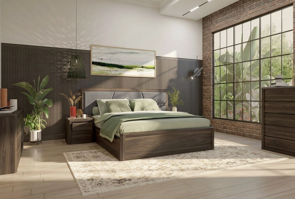 Turn up the luxe in your bedroom with the Mossman Bed Frame! Crafted from solid Australian Messmate timber with a marble inlay, this eye-catching piece will have your friends saying "oh la la!" Perfect for holding your essentials - or for giving your room a little extra oomph. Features include: Gas-lift under bed storage / Fabric inlay in bed head.