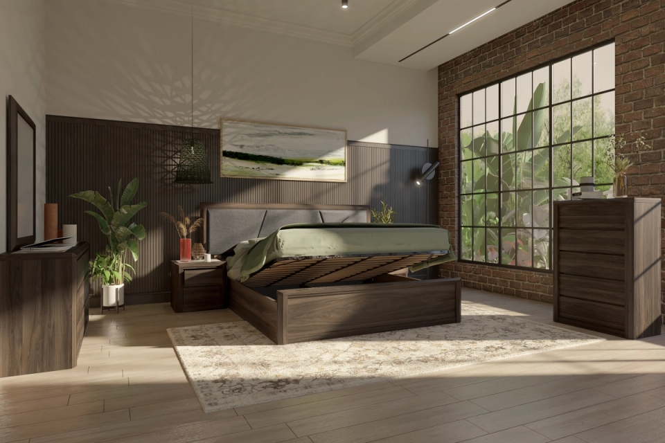 Turn up the luxe in your bedroom with the Mossman Bed Frame! Crafted from solid Australian Messmate timber with a marble inlay, this eye-catching piece will have your friends saying "oh la la!" Perfect for holding your essentials - or for giving your room a little extra oomph. Features include: Gas-lift under bed storage / Fabric inlay in bed head.