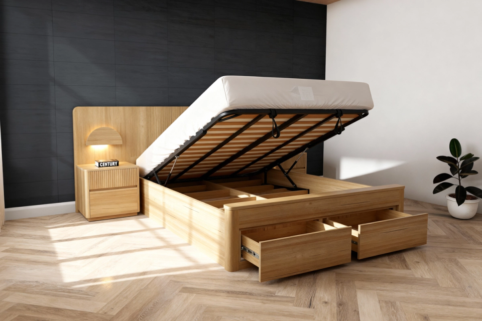 Norfolk Bed Frame with Gaslift Storage - Natural
