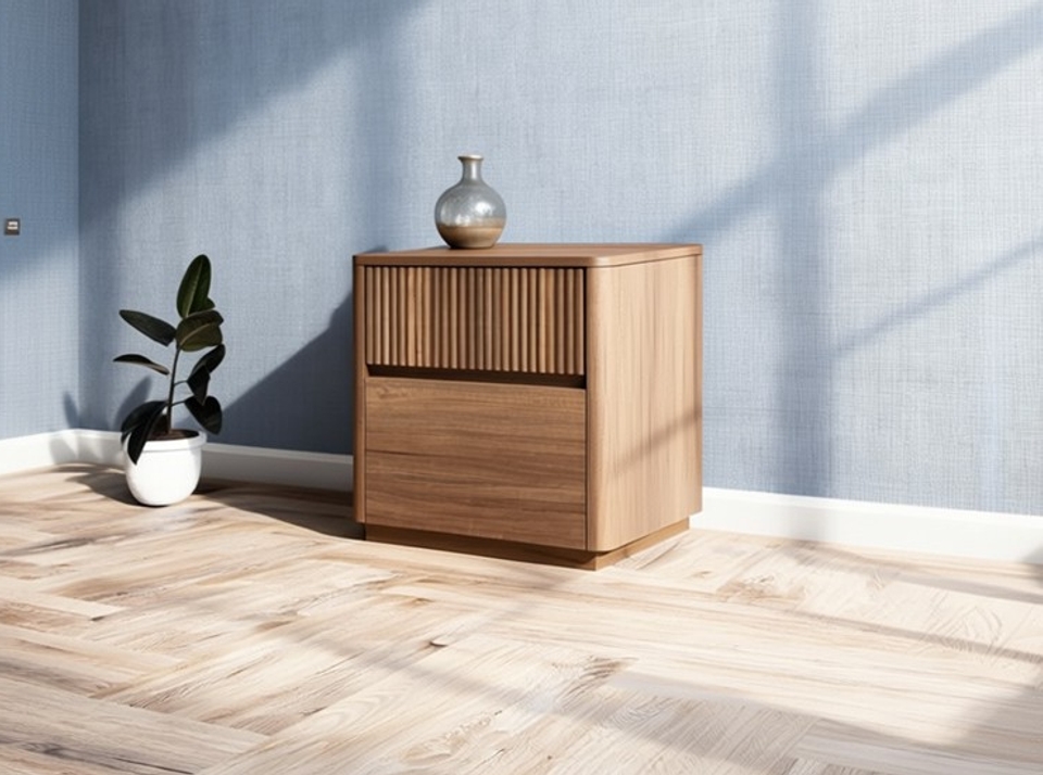 Our Norfolk Bedside Table brings warmth to the bedroom with its softly rounded edges and crafted timber finish. Subtle fluted detailing adds texture, while the clean, balanced design gives it a modern, timeless appeal — effortlessly complementing the Norfolk bedroom suite.