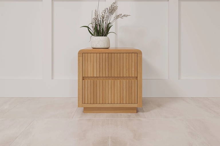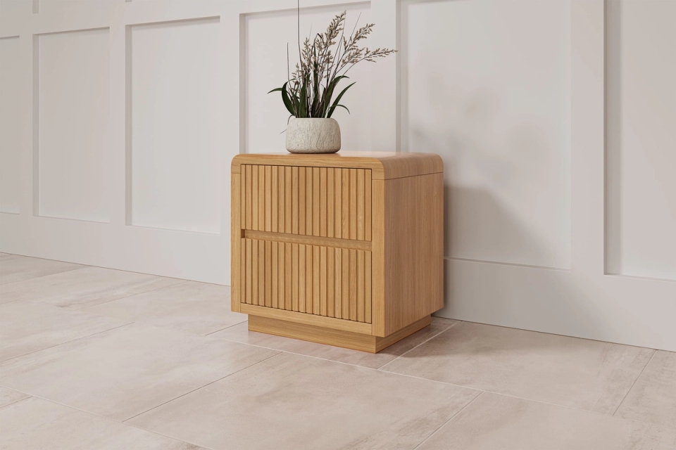 Our Oslo Bedside Table, now available in two colours has curves in all the right places. Timber cladding adds a modern edge to the bed. This bedroom suite will become a focal point in your bedroom.