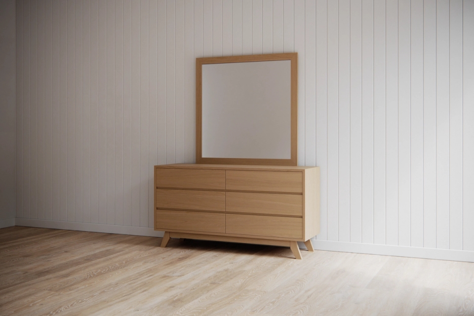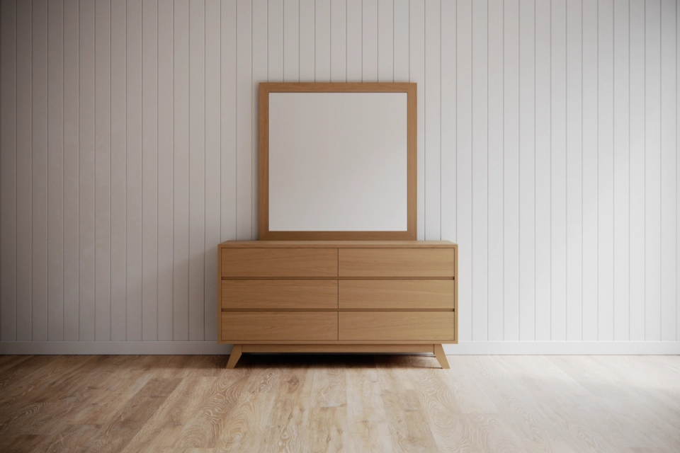Who says looking good has to cost a fortune? Our Phoenix Dresser with Mirror will bring an elevated modern style to your room without having to crack open the piggy bank. The clean lines and chic natural timber will bring your room up to style.
