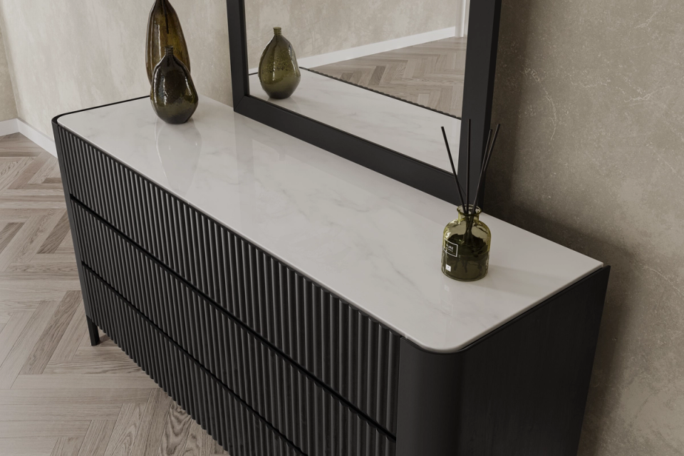 Transform your bedroom into a chic oasis with our Portugal Bed. Its sleek black design adds a modern touch while becoming the focal point of the room. Upgrade your space with style and comfort!