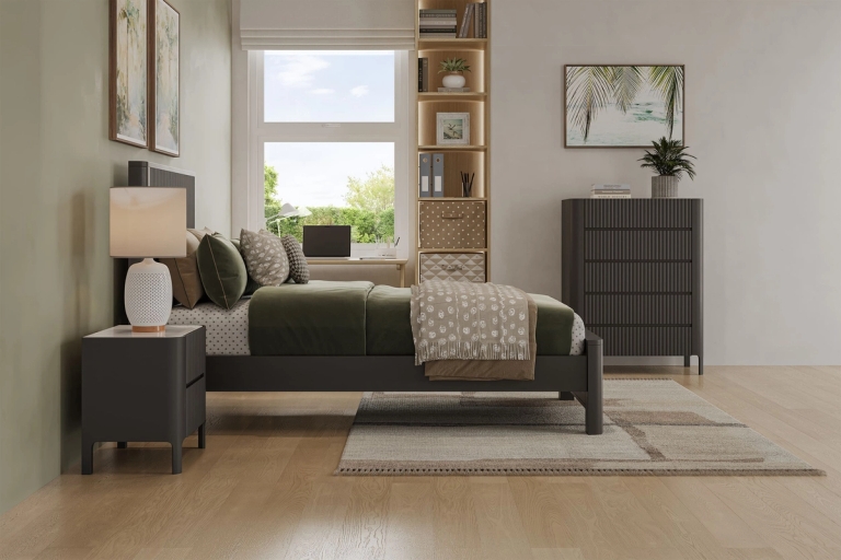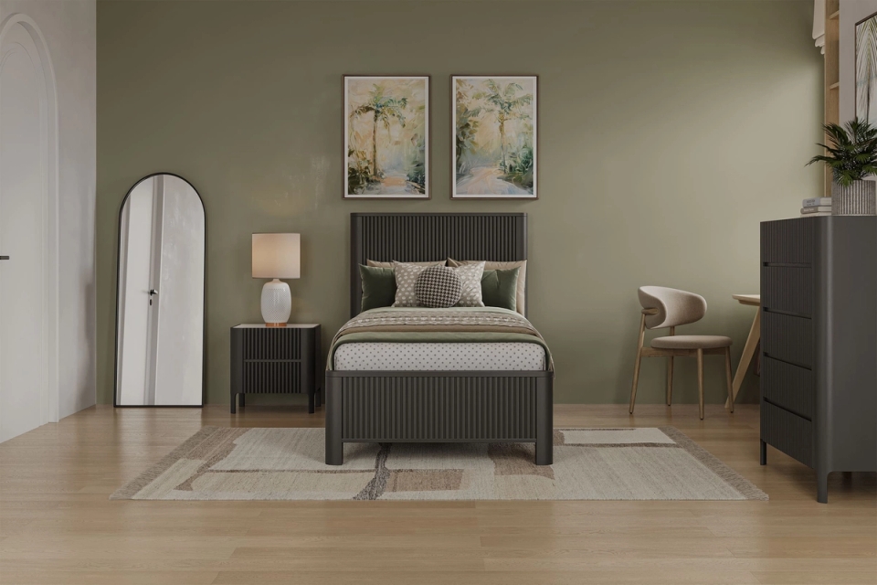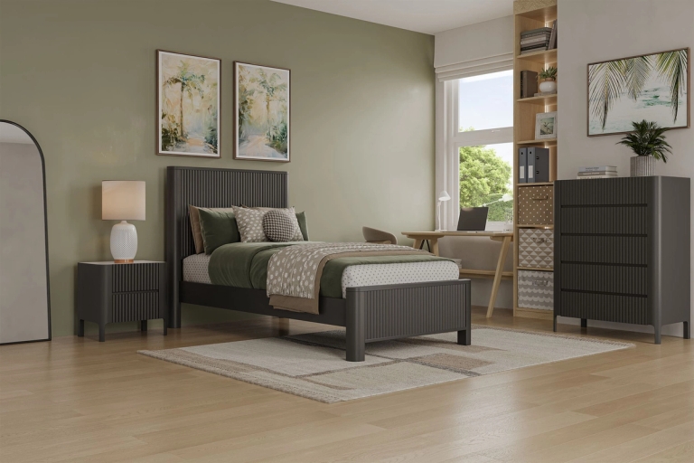 Create an oasis in your child's room with the Portugal Kids Bed Frame. The modern design in a contemporary black tones will elevate any bedroom, making it a stylish and comfortable retreat.