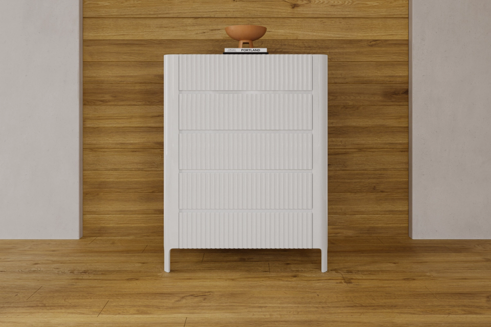 Transform your bedroom into a chic oasis with our Portugal Tallboy. Its chic white design adds a modern touch while becoming the focal point of the room. Upgrade your space with style and comfort!