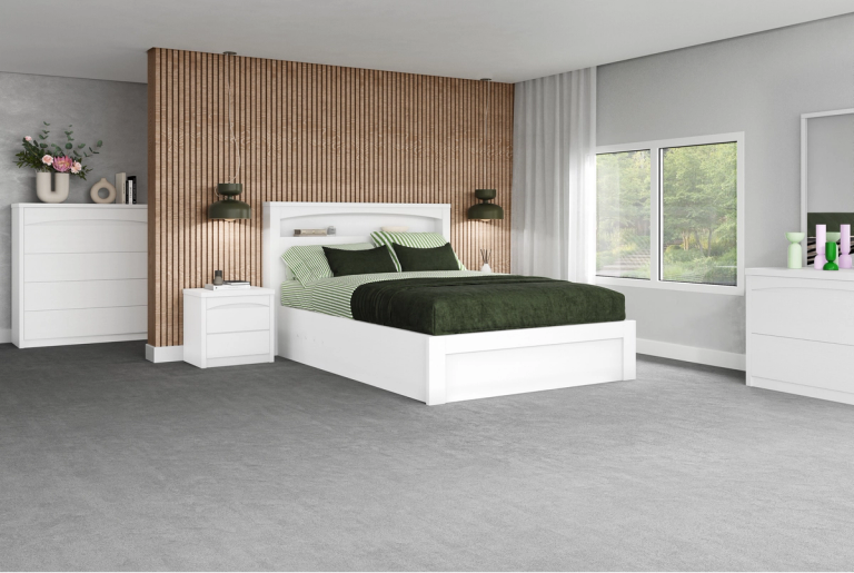 Introducing the Rome Bed Frame - the ultimate combination of style and function. With bedhead gas-lift storage, this bed offers maximum organization for your space. Don't just sleep in it - live in it! Features include: Bed head storage / LED lighting / Wireless charging pad in bed head / Underbed gas-lift storage. Optional White or Walnut timber colours available.