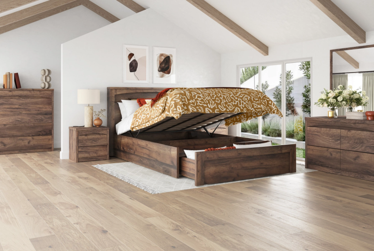 Rome Bed Frame with Gaslift storage - Walnut
