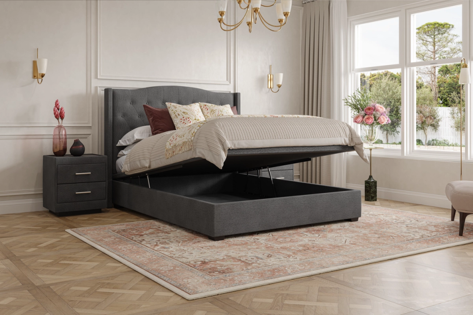 St Moritz Bed Frame with Gaslift Storage - Grey