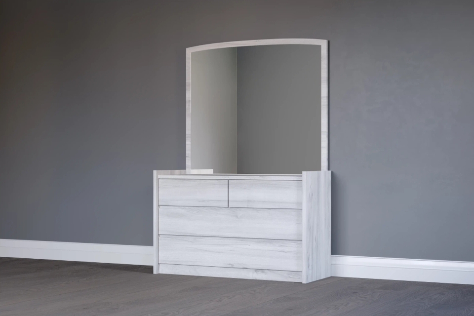 The Summit Dresser with Mirror combines practical functionality with stylish cool grey tones.