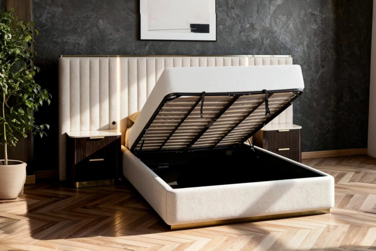 Introducing the Zara Bed with Gas-Lift: a sleek and functional addition to your bedroom. Featuring a modern upholstered design with a panelled bedhead and integrated LED lighting, it offers easy-access gas-lift storage to help keep your space organised. Sleep in style and convenience with the Zara Bed. The Zara Bed features gas-lift storage, integrated LED bedhead lighting and contemporary upholstery.